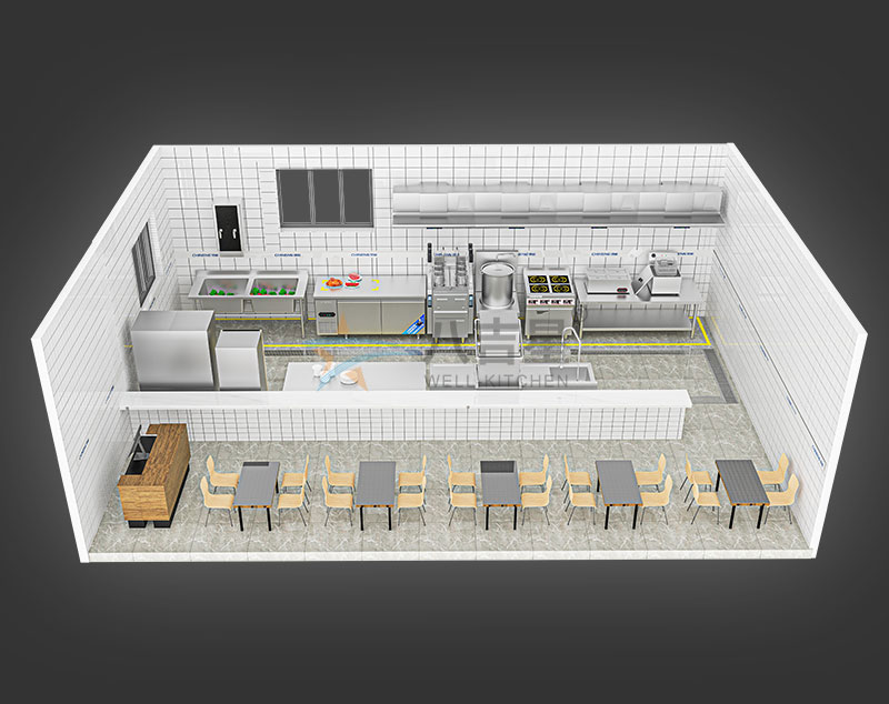 專供標準化連鎖餐飲廚房工程,針對中高端連鎖品牌,由資深商用廚房工程師根據品牌定位,裝修風格,菜品樣式,店鋪檔次等多維度進行廚房設計及設備配套方案,廚具設備可根據品牌風格進行外觀定制。